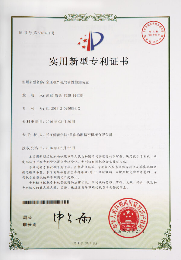 實(shí)用新型專利證書(shū)